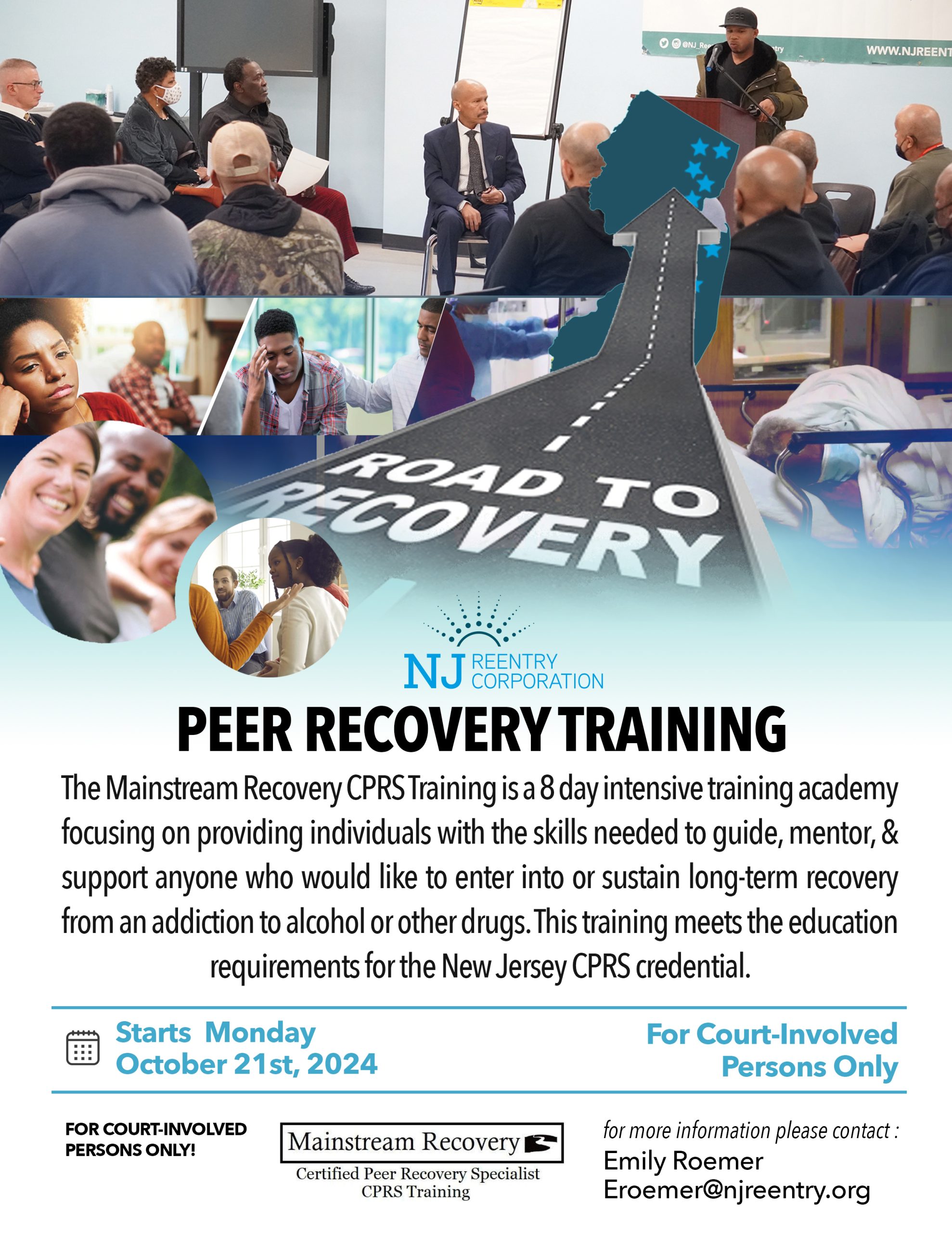 The Governor's Reentry Training & Employment Center 195 Campus Drive, Kearny, NJ, United StatesNJRC Peer Recovery Class The Mainstream Recovery CPRS Training is an 8-day intensive academy designed to provide individuals with the skills needed to guide, mentor, and support those looking to enter or sustain long-term recovery from addiction to alcohol or other drugs. This training meets the educational requirements for the New Jersey CPRS credential. Training…