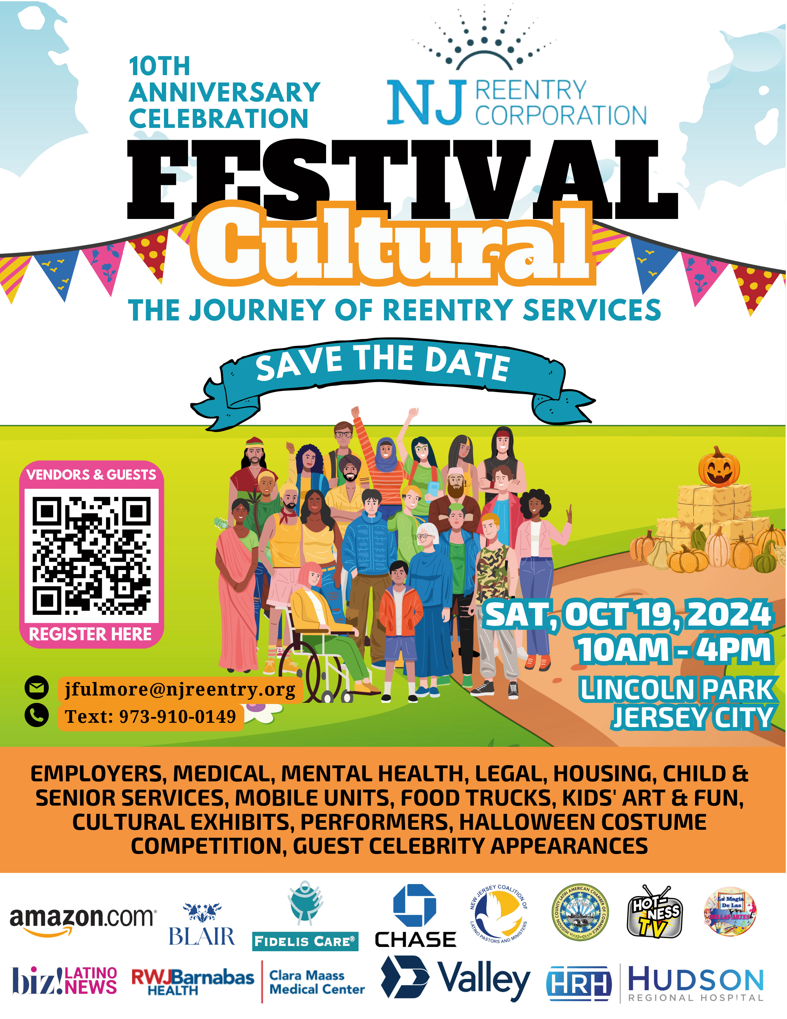 1 Lincoln PkJersey City, NJ 07304 1 Lincoln Park, Jersey City, United StatesYou are cordially invited to NJRC's 10th Anniversary Celebration Cultural Festival: The Journey of Reentry Services FREE ENTRY FOR EVERYONE SATURDAY, OCTOBER 19, 2024 10:00 AM - 4:00 PM AT…