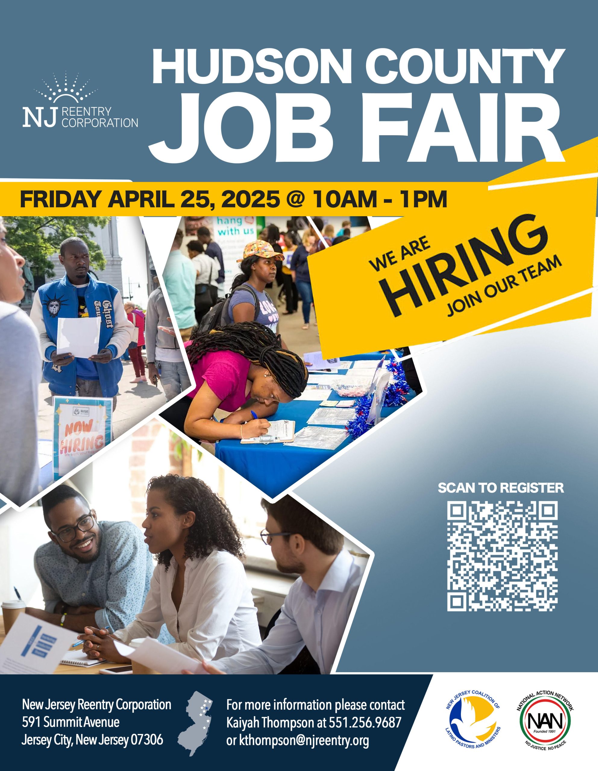 NJRC Jersey City 591 Summit Ave, 6th Floor, Jersey City, Jersey City, United StatesFRIDAY, APRIL 25, 202510:00 AM - 1:00 PMNew Jersey Reentry Corporation 591 Summit Avenue, Jersey City, NJ 07306 The New Jersey Reentry Corporation (NJRC) is hosting a job fair to connect individuals with various employment opportunities in the Hudson County area. We're partnering with employers offering diverse job openings. Whether you're looking to make a…
